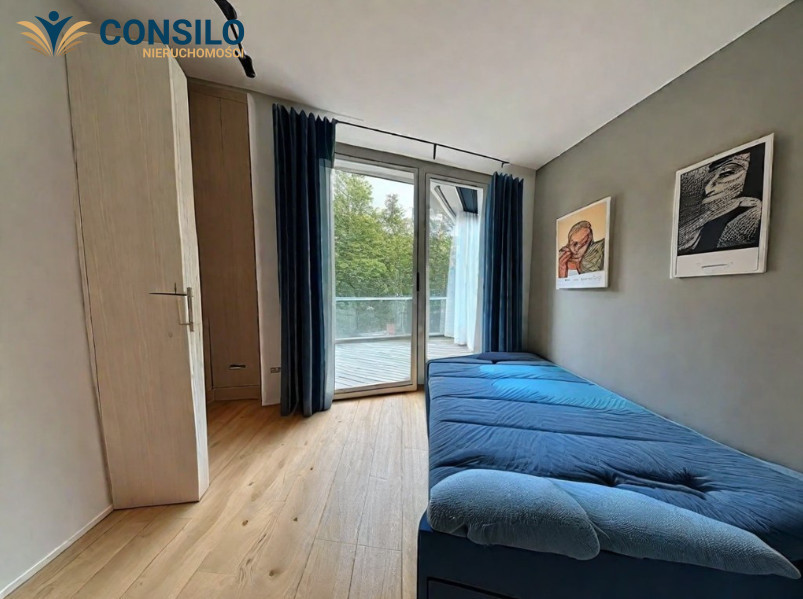 II poziom: - Sypialnia I z balkonem - Sypialnia II z antresolą - Sypialnia III z dużym łóżkiem - Łazienka - Wyjście na prywatny taras z widokiem na panoramę Krakowa